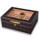 Black Ice can hold up to 100 cigars and contains 1 rectangle humidifier and 1 glass hygrometer with a brass ring. This unique cigar box features a modern, masculine design with a distinctive style. Its divided interior provides maximum versatility and the simple, clean styling blends with any décor. The...